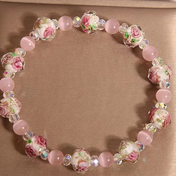Crystal Colored Glazing Bead Bracelet Female Light Luxury Minority High Sense Opal